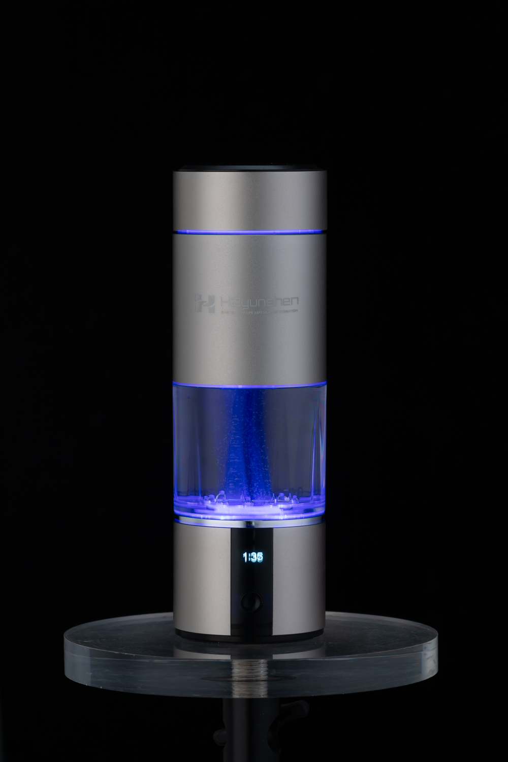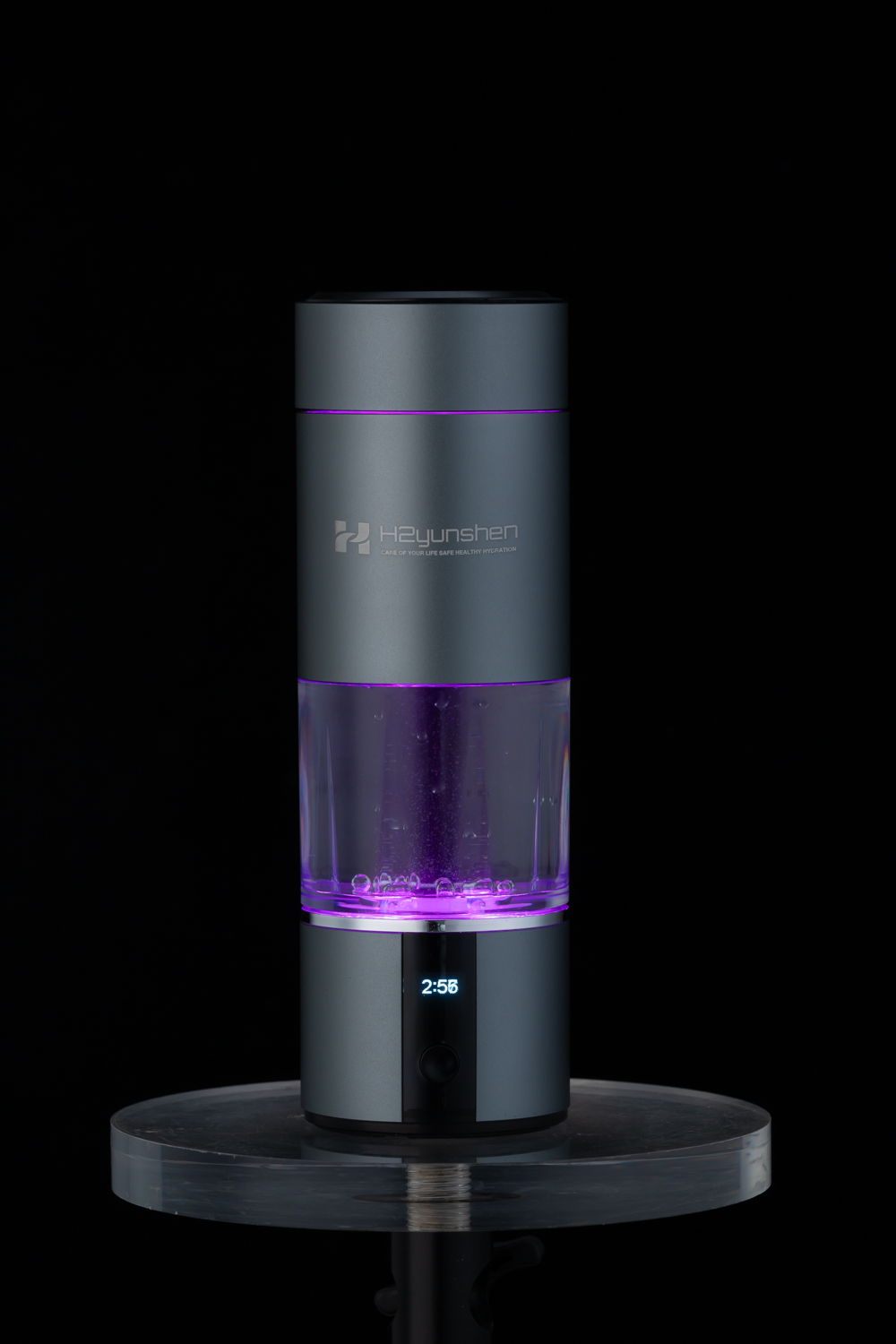 What is this device? It is a hydrogen-rich water bottle generator. A hydrogen-rich water bottle generator is a device equipped with an electrolysis unit located at the base of the bottle. This unit uses a proton exchange membrane to electrolyze the water, separating hydrogen molecules and dissolving them into the water to produce hydrogen-rich water. Hydrogen-rich water refers to an aqueous solution containing a high concentration of dissolved hydrogen molecules. The hydrogen concentration in such water is usually measured in parts per million (ppm) or milligrams per liter (mg/L). The X5 model hydrogen-rich water bottle from the brand H2yunshen was tested by H2 Analytics and reached a maximum hydrogen concentration of 6,891 ppm (6,891 mg/L) within 15 minutes. Additionally, it received a Level 4 certification from H2HUBB, the highest level currently available, establishing itself as the leading product in the global market.